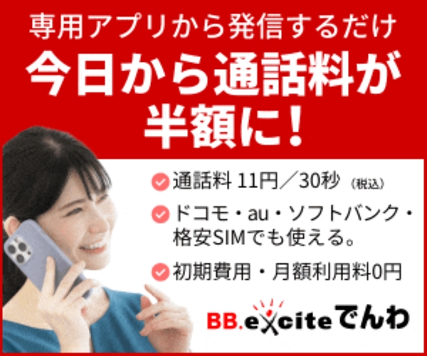 というように通話料が高いのが玉に瑕なpovoですが、その唯一といってもいい弱点を補ってくれる誰でもスマホの通話料が半額になる「BB.exciteでんわ」
