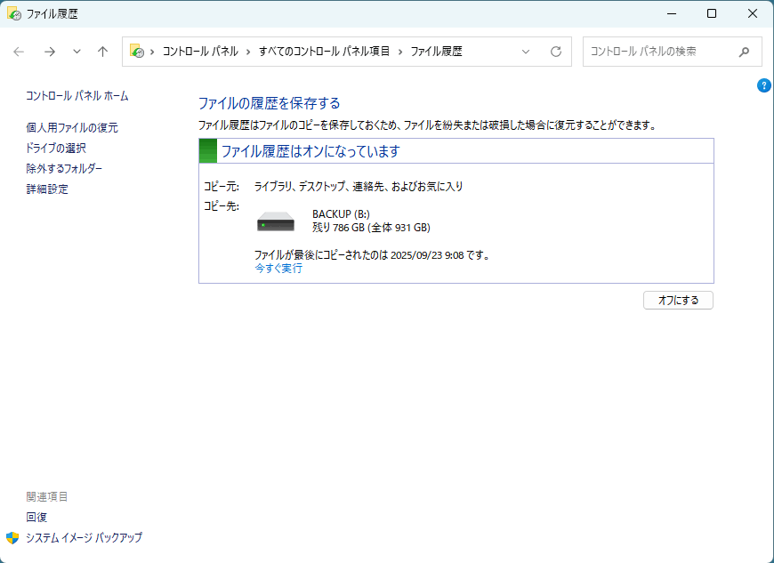 脱力系備忘録BloG ホーム »Windows 11 ファイル履歴バックアップのやり方備忘録