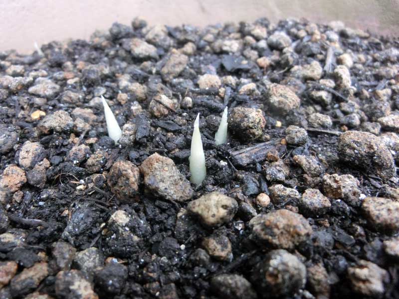 今年はなかなか芽が出てこないなあと心配していたのですが、ようやくひょこひょこっと出てきました。