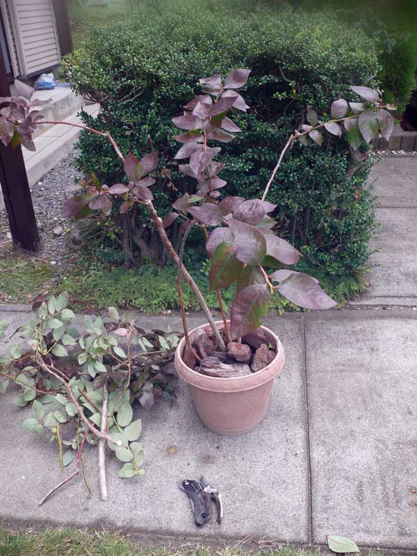 コガネムシの幼虫に根を荒らされたヌイのコガネムシ捕殺作業を昨日していたのですが、その際に株元からボッキリと折れちゃってとりあえず植木鉢にそのままの姿で植え直ししてたのですが、根っこがほぼない状態なので流石に冬すら越せないだろうと思い本日思い切って強剪定しました。